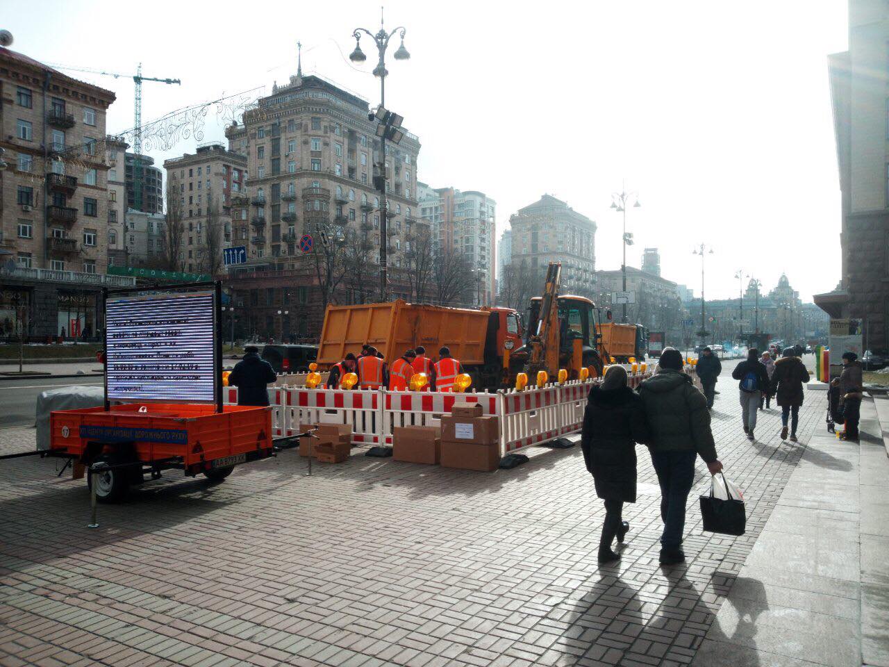 В субботу, 16 февраля, сотрудники КП "Центр организации дорожного движения" установили временные ограждения в месте выполнения ремонта водопроводных сетей на тротуаре возле Киевской городской государственной администрации. Об этом сообщили в коммунальном предприятии "Центр организации дорожного движения".