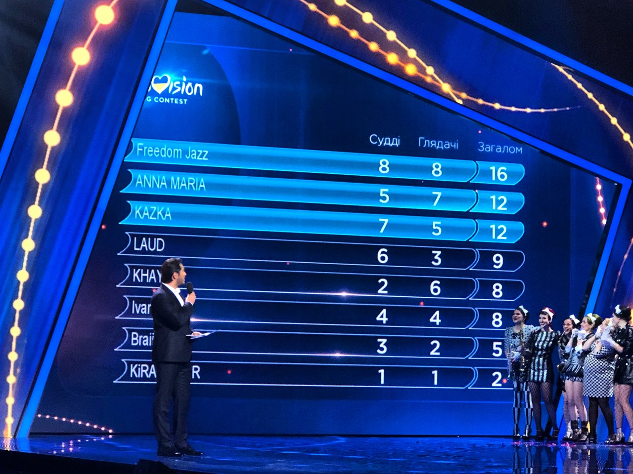 При это жюри проголосовали так: 8 баллов - Freedom jazz, 7 баллов - группа KAZKA и 6 баллов - певец LAUD.