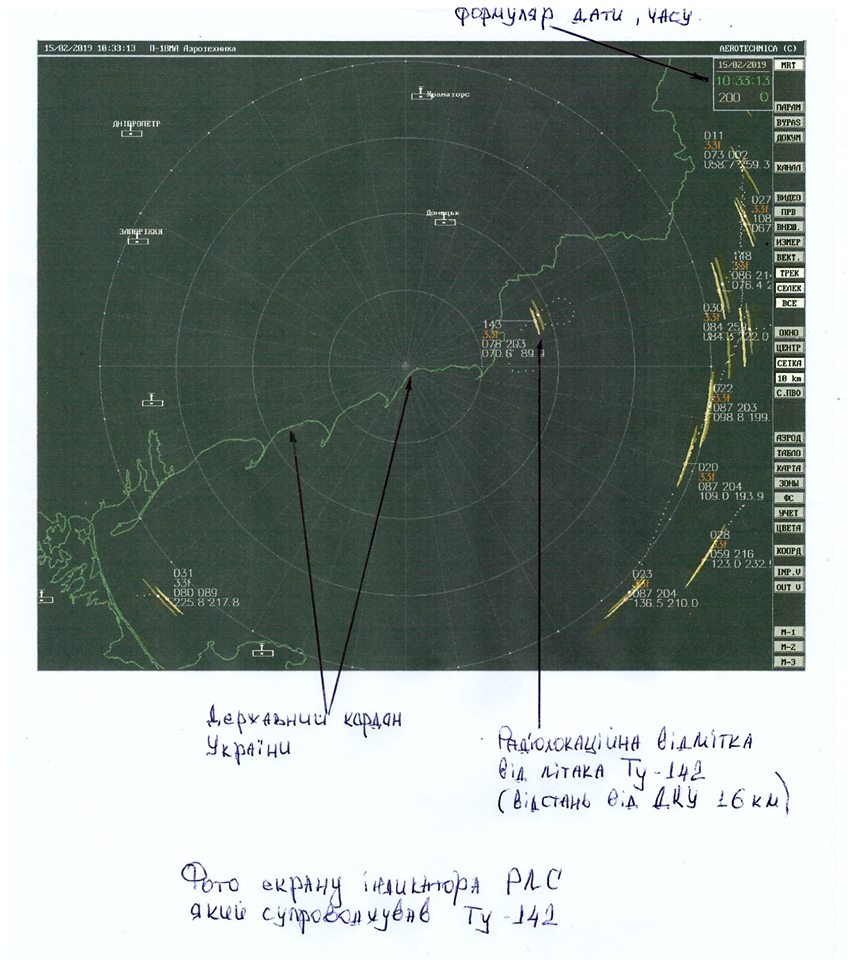 Утром 15 февраля когда наблюдатели Специальной мониторинговой миссии (СММ) ОБСЕ согласно отчету якобы зафиксировали в небе над неподконтрольной правительству Украины территорией Донбасса полеты самолета ТУ-95 или ТУ-142, дежурные подразделения Радиотехнических войск из состава Операции объединенных сил (ООС) обнаружили в районе аэропорта "Таганрог" (Ростовская обл., РФ) воздушную цель, идентифицированную как дальний противолодочный самолет Ту-142 вооруженных сил Российской Федерации.