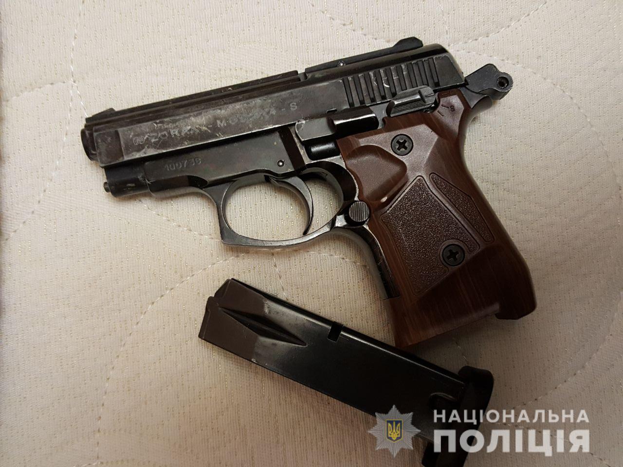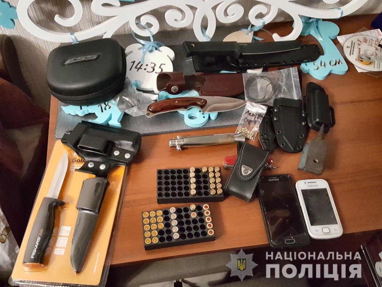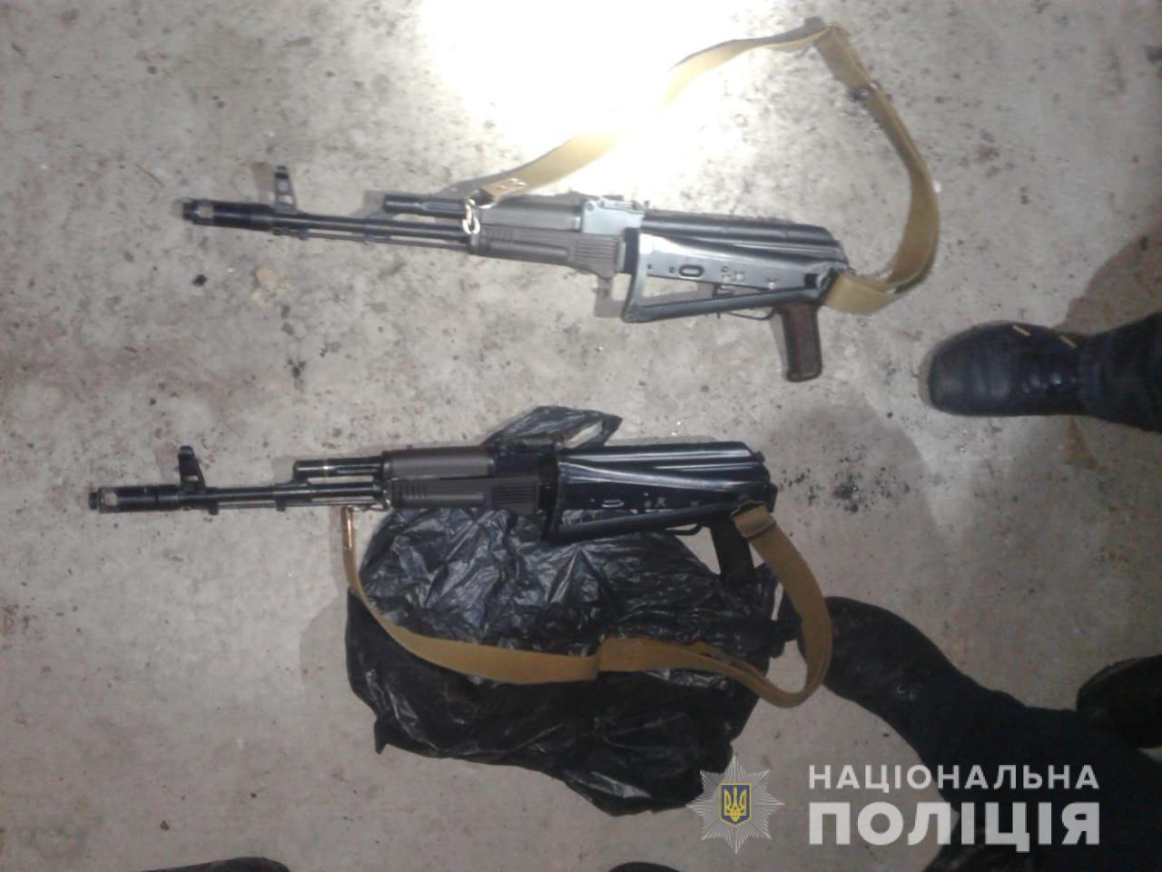 Правоохоронці провели обшуки за місцями мешкання учасників групи, в результаті яких виявили та вилучили два автомати Калашникова, пістолети, гранату Ф-1, травматичну та холодну зброю та інші речові докази.