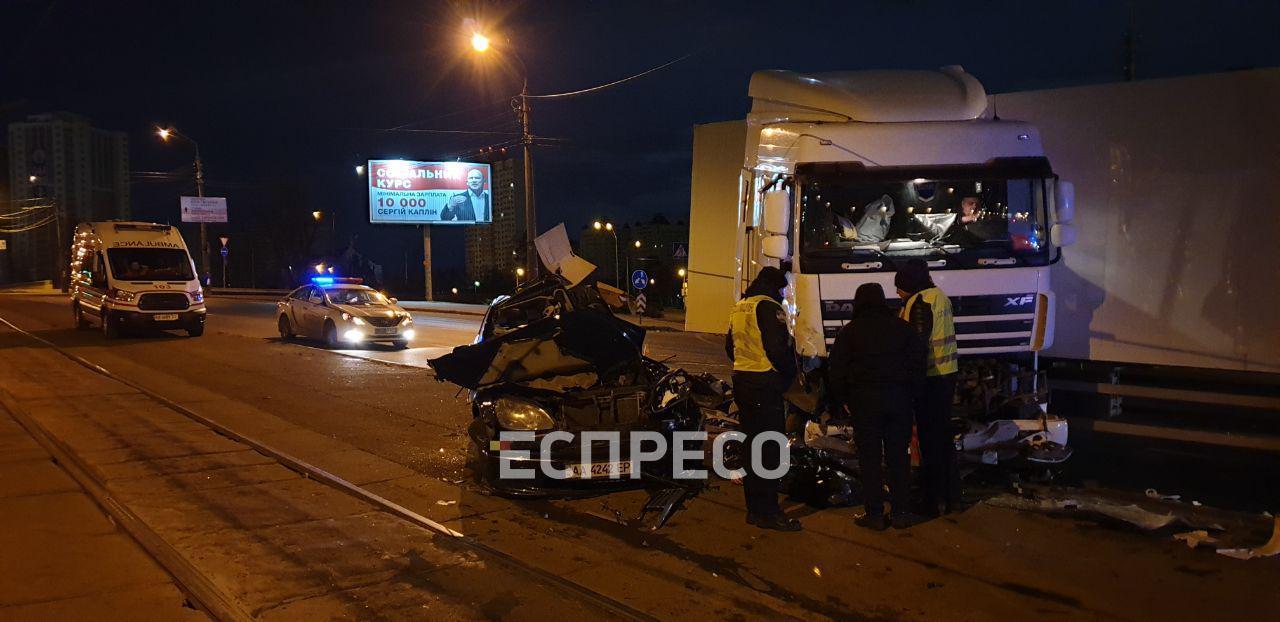 Как сообщает Еспресо.ТВ, водитель фуры, двигаясь в колонне из четырех машин со стороны рынка Юность, подъехал к Броварскому путепроводу.