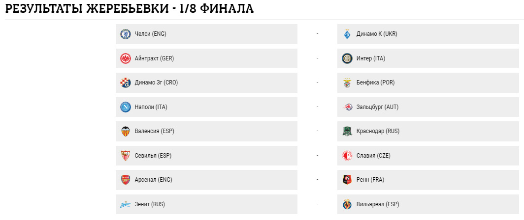 В штаб-квартире УЕФА состоялась жеребьевка 1/8 финала Лиги Европы.