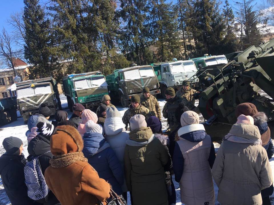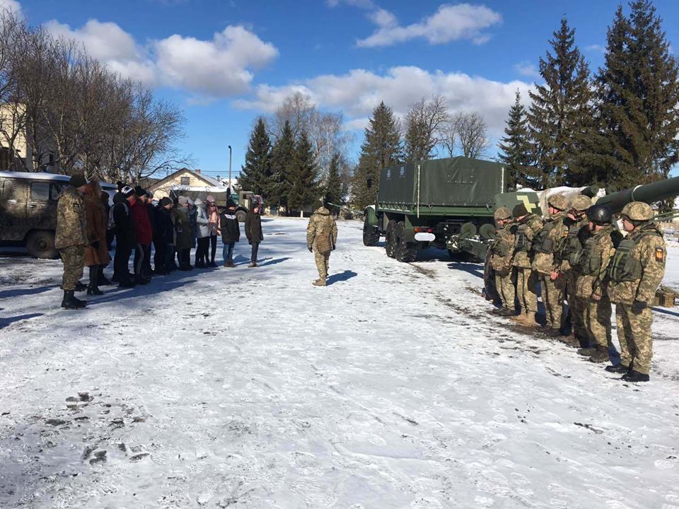 Вже стало доброю традицією проводити Дні відкритих дверей та екскурсії, під час яких ознайомлювати молоде покоління з історією формування підрозділів Тернопільських артилеристів. Цього разу учні місцевої загальноосвітньої школи №1 завітали у військове містечко, що знаходиться у місті Теребовля. Їх учителі добре пам’ятають давню історію колишньої військової частини, а також славетних зенітників. Тривалий час ця територія була місцем дислокації 223-го зенітного ракетного Теребовлянського полку, який входив до складу Повітряних сил України. У 2004 році частину розформували, а техніку та особовий склад перемістили до міста Стрий у Львівську область. Сьогодні, сформована в боях артилерійська бригада отримала військове містечко у спадок, за роки пустки та руйнування приміщень від погодних умов вона знову відновлюється, відроджується, на території будуються нові приміщення, гуртожитки, приводиться до порядку інфраструктура. Все це означає, що Збройні сили приділяють належну увагу розвитку, тому вже є що показати майбутнім захисникам української землі, Теребовлянської зокрема. Старший лейтенант Олександр Бородайко провів екскурсію територією де служать військові, показав в яких умовах проживають солдати, а також чим займаються у повсякденній діяльності. Артилеристи розгорнули гармату, розповіли про тактико-технічні характеристики автомата, показали обчислювальні та оптичні прилади, говорили про тактичну медицину. Чимало учнів проживають поруч із військовою частиною, але відвідують її вперше, тому залюбки цікавились чи проходять військову службу у ній дівчата, які для них створені умови для служби, які обов’язки покладають на жінок в армії, хлопці ж задавали питання, які спеціальності у війську є для чоловіків, що потрібно, щоб стати військовим. Екскурсія для школярів та їх вчителів склала надзвичайно приємні враження, юнаки та дівчата отримали справжній адреналін від військової амуніції, а спільне фото відтепер прикрашатиме шкільний стенд у їхньому класі. По завершенні зустрічі було вирішено провести наступне побачення, яке відбудеться незабаром для інших учнів Теребовлянської загальноосвітньої школи