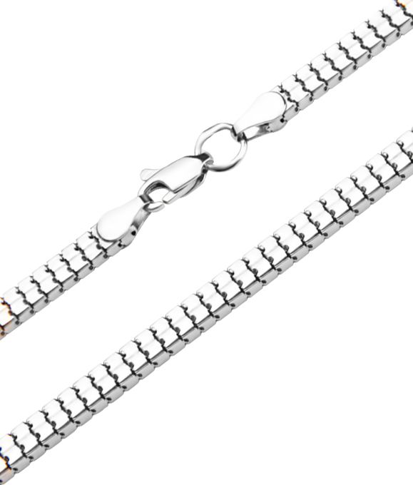 Еще более бюджетный вариант изделия. Как и предыдущий, эта цепь выполнена из серебра 925 пробы и в наличии те же самые ходовые размеры. Цена со скидкой - от 203 грн. для 40-сантиметровой цепи и до 275 грн. для размера 50 см.