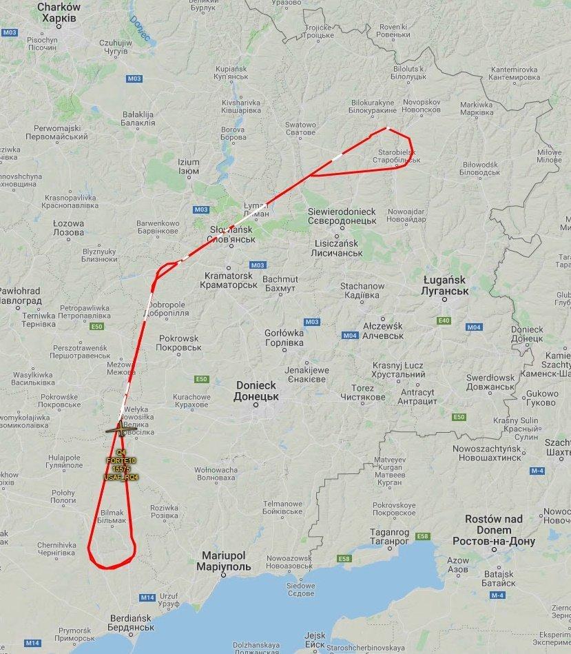 Американский беспилотный самолет разведчик RQ-4B-30 Global Hawk совершает полет вдоль линии разграничения в Донецкой и Луганской областях, сообщает Украинский милитаристский портал.