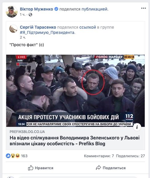 Репост публикации Сергея Тарасенко в группе «#Я_Підтримую_Президента» был сделан в 22:07.