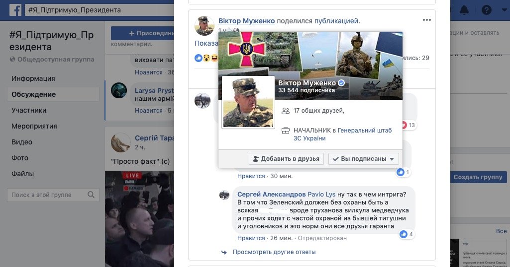 В комментариях под записью журналист Юрий Бутусов напомнил, что в 2012 году Виктор Муженко агитировал 8-й корпус голосовать за Партию Регионов.
