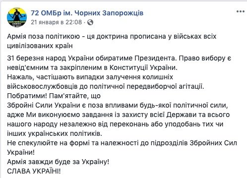 Отметим. большинство бригад ВСУ не поддались на провокации начальника ГШ ВСУ и на своих страницах в соцсетях отметили, что они вне политики.
