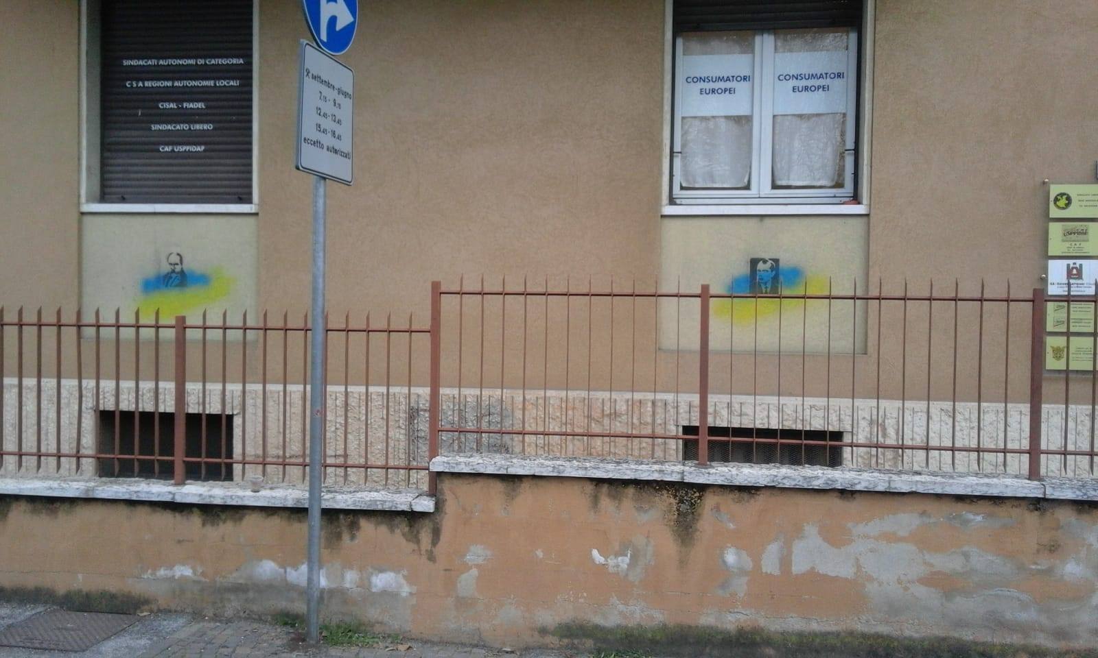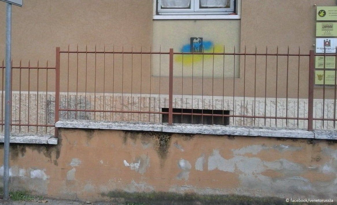 Портреты Степана Бандеры на фоне цветов украинского флага, нанесенные при помощи трафарета, появились на стенах здания"Ассоциации Венето-Россия" в Вероне, сообщил РИА Новости президент этой организации Палмарино Дзоккателли.