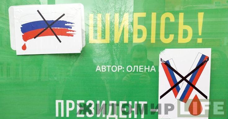 Как уточняет Укринформ, на билборды кандидатов в президенты были наклеены флаги России.