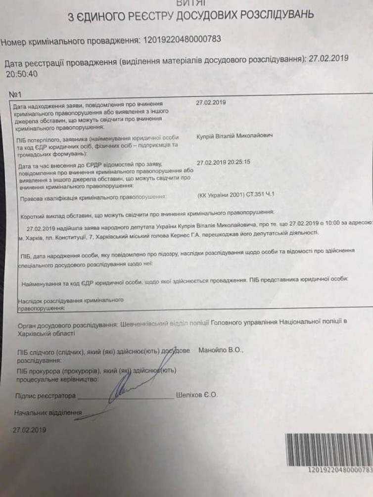 Розслідування почалось. Демонструю витяг із ЄРДР.