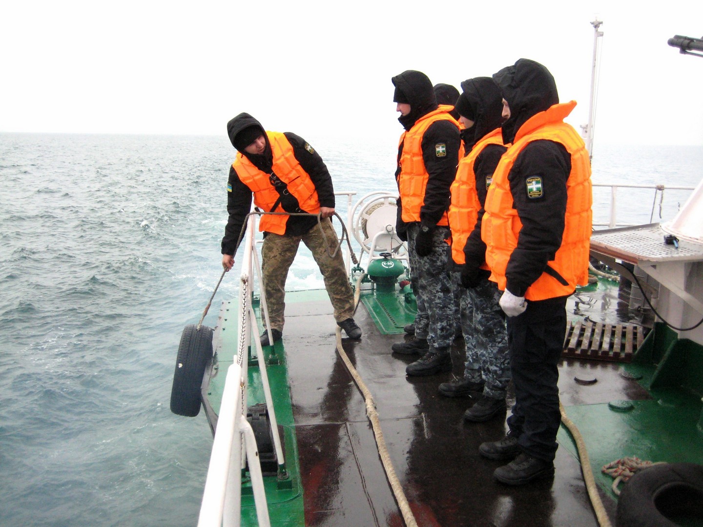 На кораблі Морської охорони «Миколаїв» під час виходу в море також навчали молоде поповнення. Залучали їх і до заходів протидиверсійної оборони, і до боротьби за живучість корабля, а також вчили вправлятися в умовах хитавиці із самими різними предметами – від кранців до особистої зброї.
