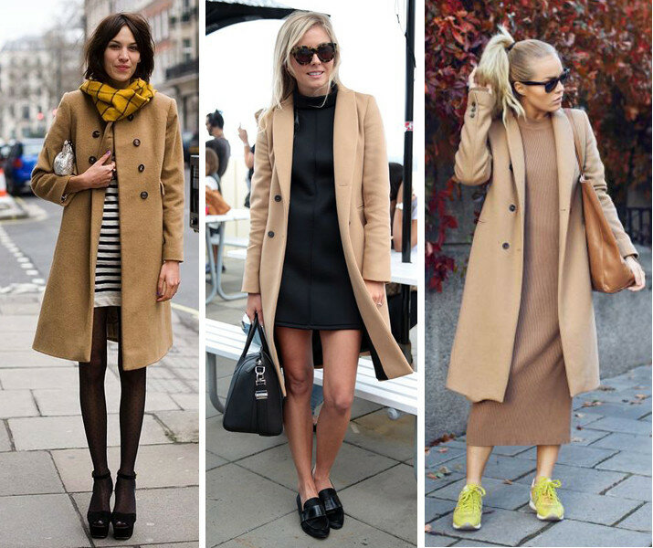 Самый модный вариант верхней одежды - кашемировое пальто теплого бежевого оттенка. Идеально, если пальто будет с запахом и отложным воротником в ширину плеч.