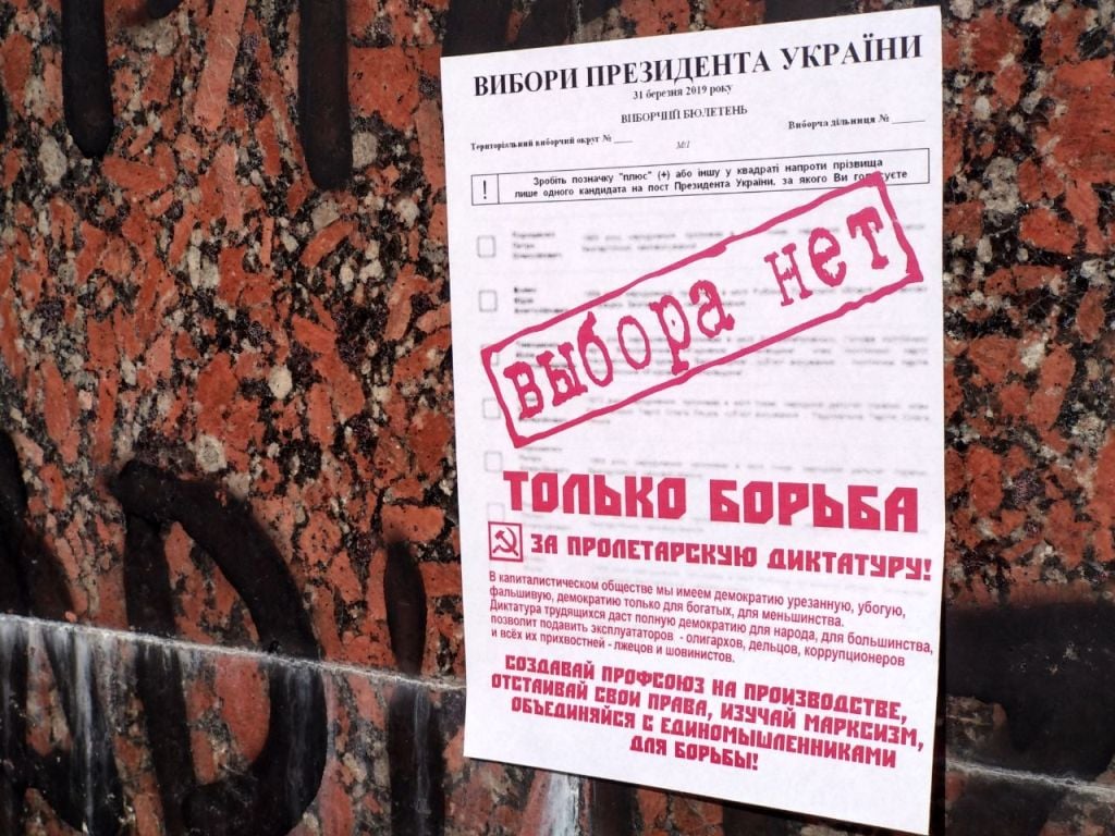 «Только борьба за пролетарскую диктатуру! В капиталистическом обществе мы имеем демократию урезанную, убогую, фальшивую, демократию только для богатых, для меньшинства. Диктатура трудящихся даст полную демократию для народа, для большинства, позволит подавить эксплуататоров – олигархов, дельцов, коррупционеров, и всех их прихвостней – лжецов и шовинистов. Создавай профсоюз на производстве, отстаивай свои права, изучай марксизм, объединяйся с единомышленниками для борьбы!», – написано на листівці.