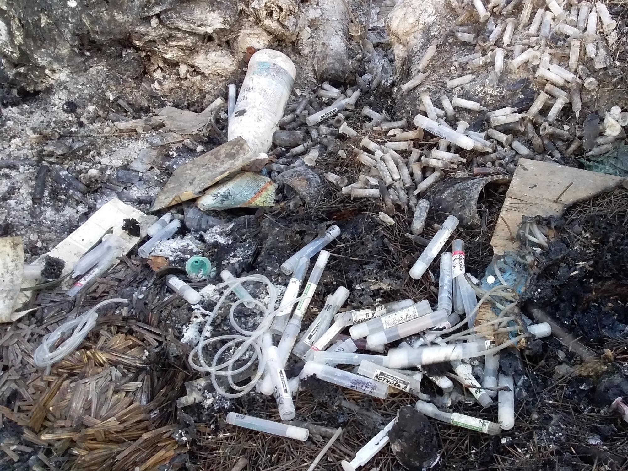 Мониторинг выявил наличие несанкционированного захоронения большого количества медицинских отходов, отходов содержащих ртуть и отходов с маркировкой биологической опасности.