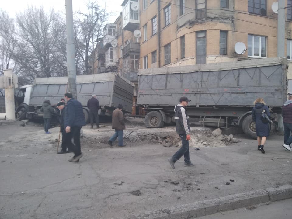 По предварительной информации, у грузовика отказали тормоза. Водитель пытался избежать столкновения с легковушкой но тщетно. После удара фура продолжила движение и вылетела на пешеходную зону, где сбила вентиляционную конструкцию метрополитена.
