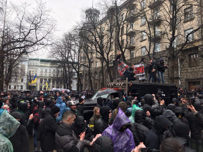 После митинга на Майдане Независимости националисты прошли маршем к Кабинету министров и Верховной Раде. Финальной точкой марша стала АП.