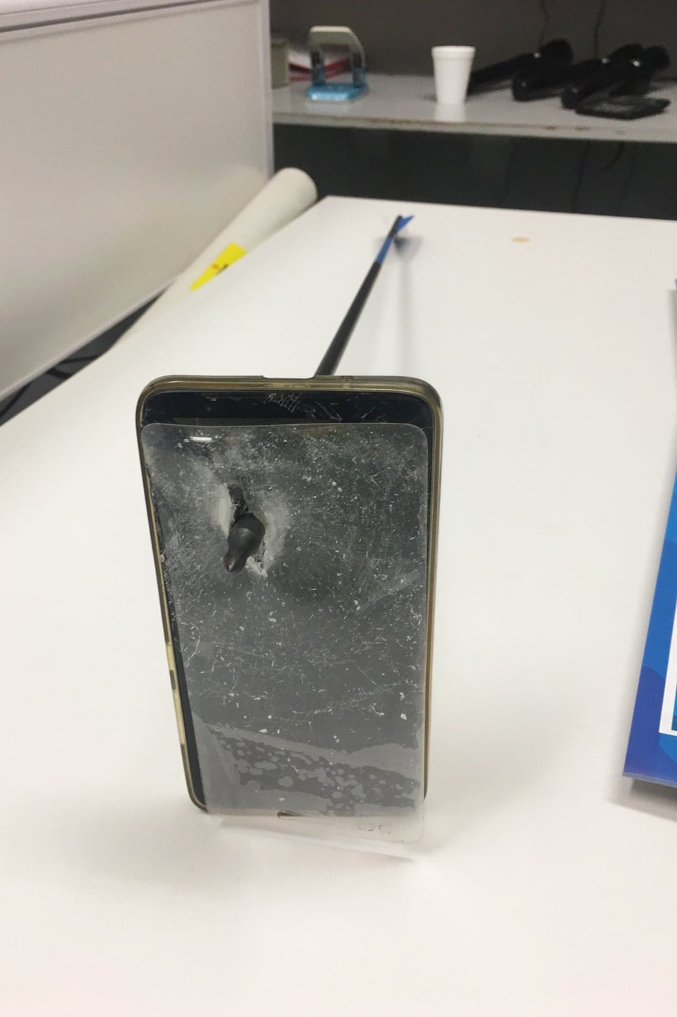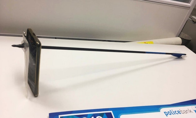 В Австралии произошел необычный инцидент. Как сообщает местная полиция, житель штата Новый Южный Уэльс подъехал на машине к своему дому и увидел человека, у которого в руках был лук и стрелы. Мужчина вытащил телефон, чтобы сфотографировать странного гостя, и в этот момент лучник выстрелил. Телефон стал своеобразным щитом: стрела пробила устройство насквозь, но не задела владельца. Он отделался царапиной на подбородке, которая не потребовала лечения, — из-за силы удара телефон отскочил вверх и задел лицо.