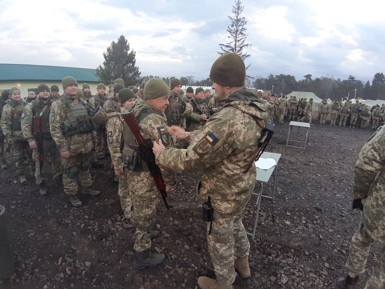 На полигоне международного центра миротворчества и безопасности состоялось торжественное вручение нарукавных знаков военнослужащим 72-й отдельной механизированной бригады им. Черных Запорожцев.