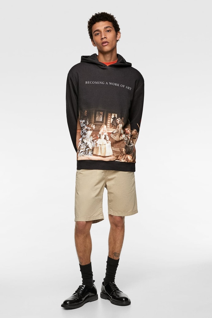 На передней части этой толстовки напечатана картина «Менины» Диего Веласкеса, написанная в 1656 году. На рукаве же — другое полотно художника: конный портрет Гаспара де Гусмана (около 1636 года). Надпись на худи — «Становясь произведением искусства» (Becoming a Work of Art).