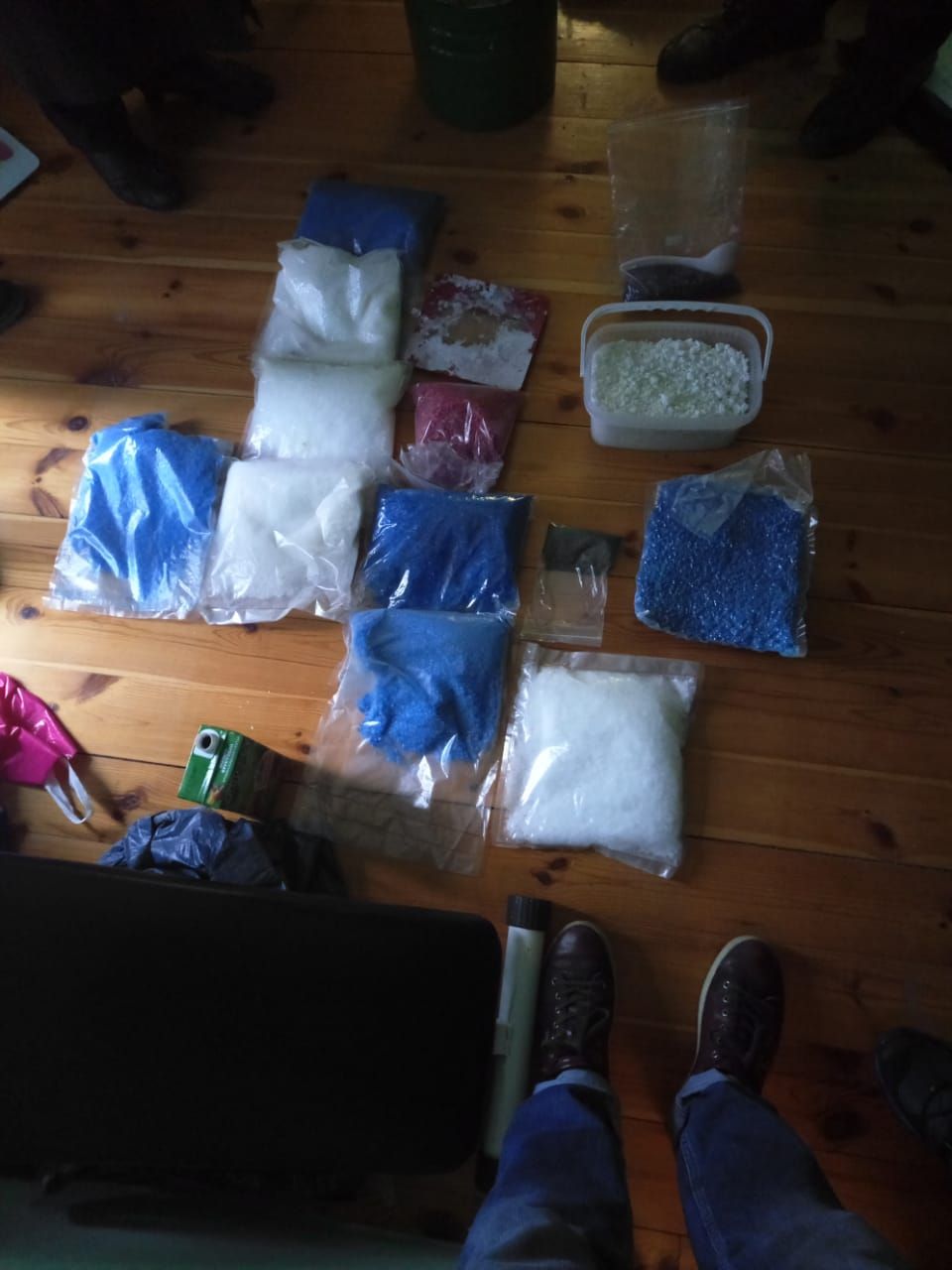 В ходе обыском у наркоизготовителей изъяли спецоборудование, более десяти килограммов психотропного вещества альфа PVP, пять килограммов мефедрона, более пяти килограммов амфетамина общей стоимостью по ценам "черного рынка" более 20 миллионов гривен.
