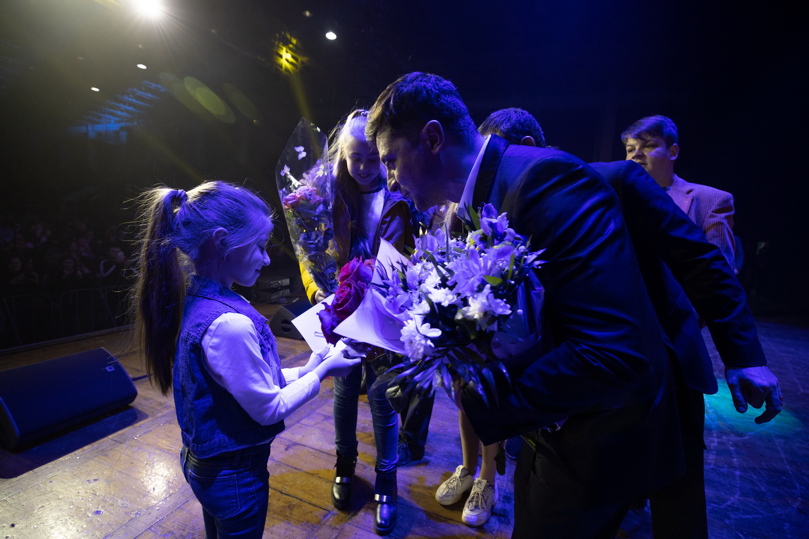 По окончанию концерта лидер «Квартала 95» спустился со сцены и пошел «в народ» – обниматься, фотографироваться и принимать подарки. Говорит, совершенно не испытывает опасений, что зрители «порвут на сувениры».