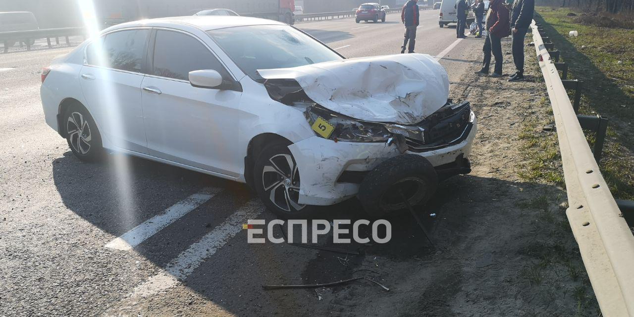 Как рассказал водитель автомобиля ВАЗ-2104, он ехал с женой и матерью из села в Киев. Только он проехал остановку общественного транспорта "Подснежники", как у "Жигули" отлетела полуось вместе с колесом. Водитель остановился во второй полосе и последовал за колесом. В этот момент его снес автомобиль Honda Accord, который после этого врезался в машину ВАЗ.