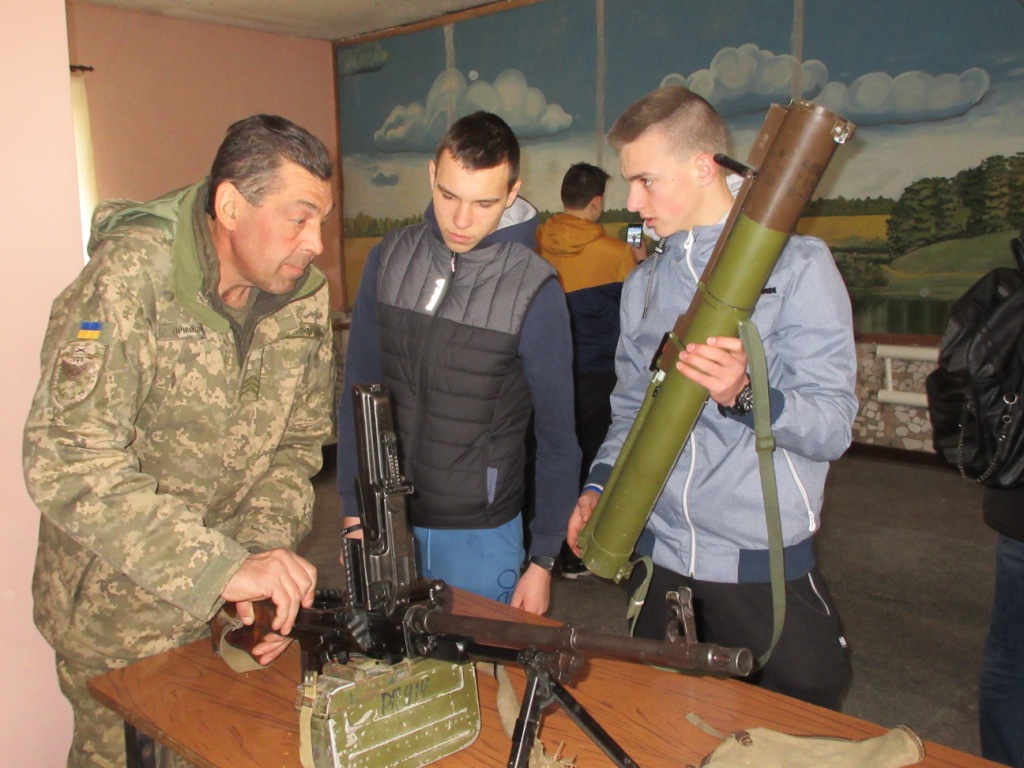 Офіцери ознайомили учнів з побутом військової частини, продемонстрували зразки озброєння та військової техніки, які перебувають на озброєнні бойової бригади, розповіли про індивідуальні засоби захисту бійців.