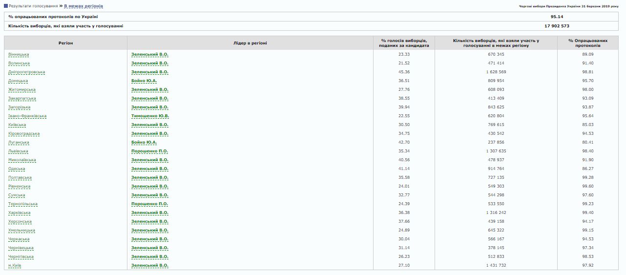 Как видно из статистики, опубликованной ЦИК, действующий президент Украины смог одержать победу только в Тернопольской и Львовской областях.