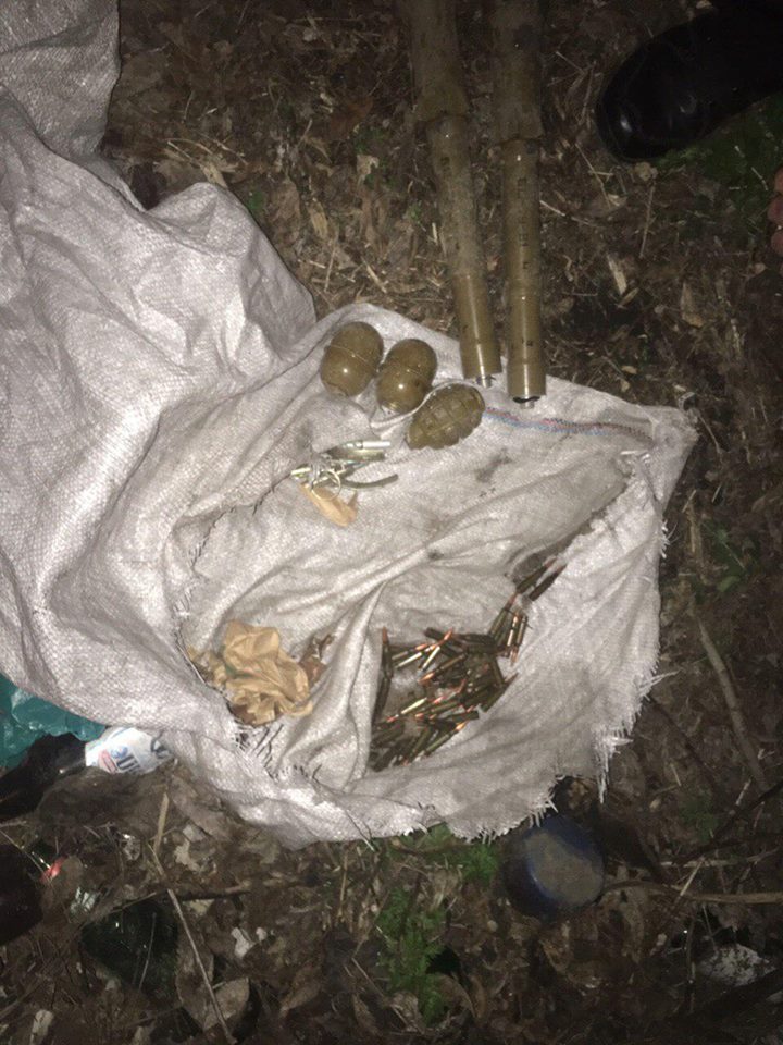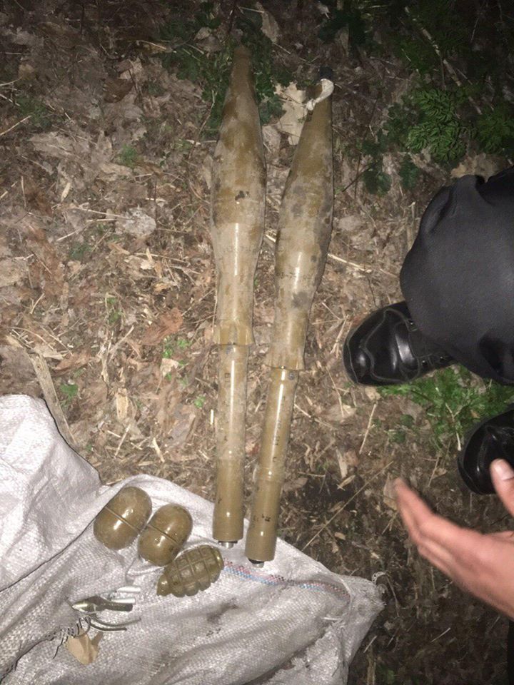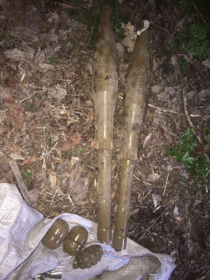 У схованці правоохоронці виявили два постріли РПГ-7, дві гранати РГД-5, одну гранату Ф-1, три запали до гранат та 40 патронів калібру 5,45 мм.