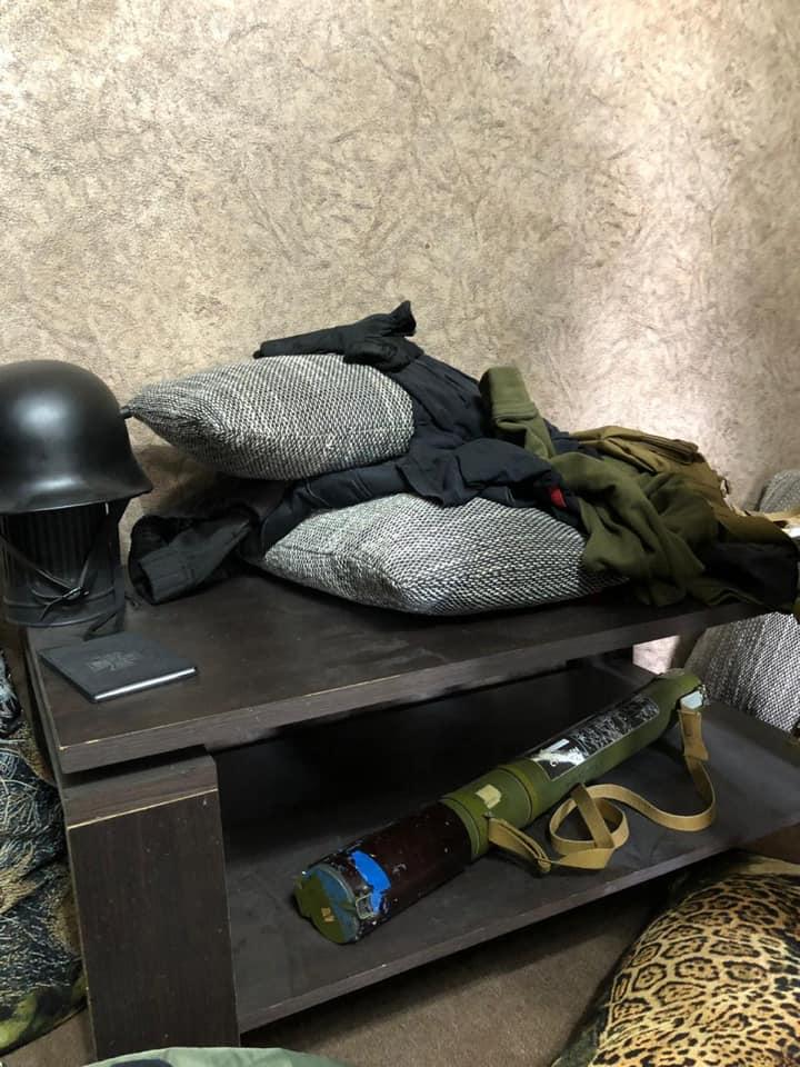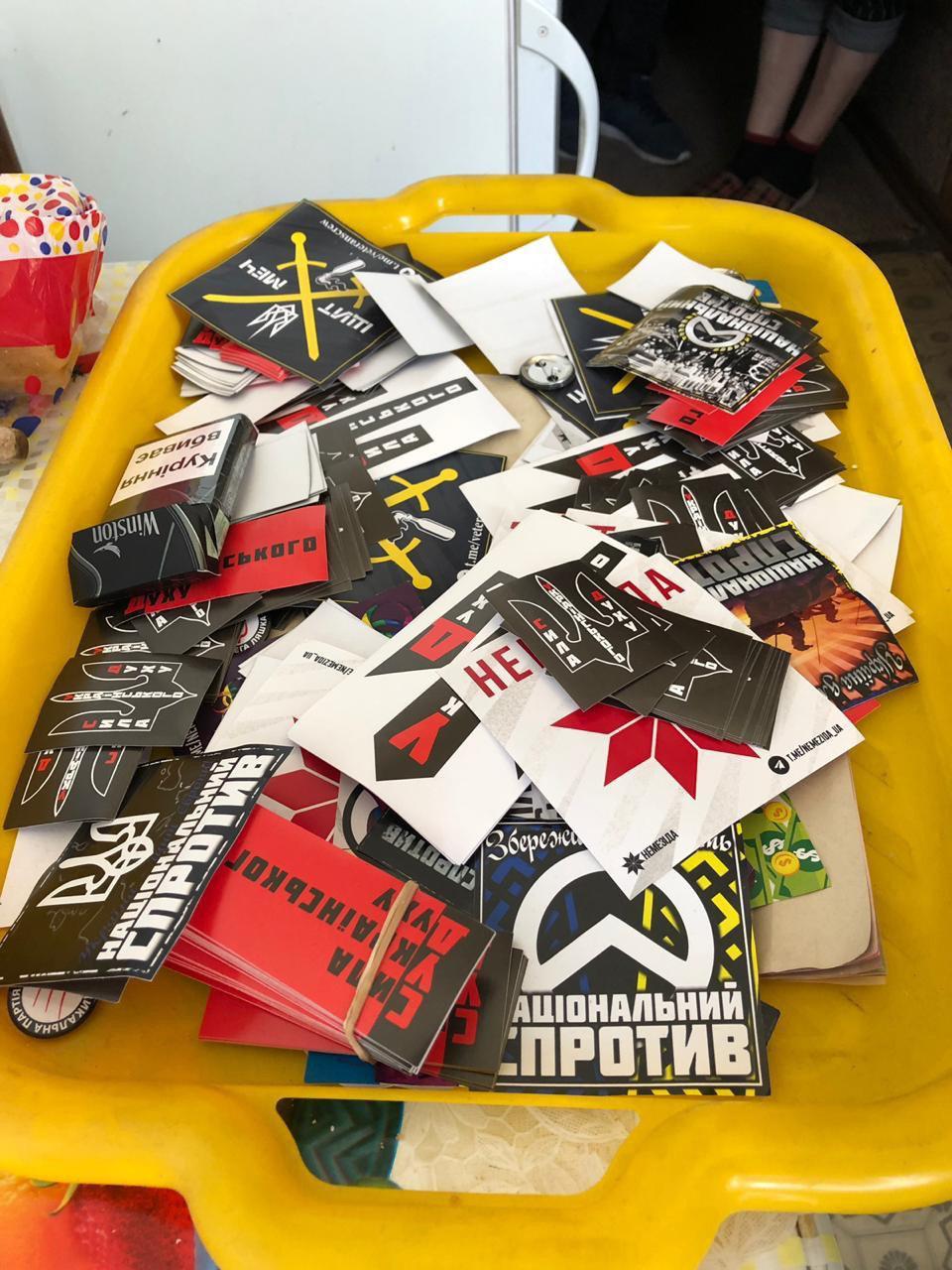 На видео, записанном правоохранителями в ходе обысков, мужчина объяснил, что служил в районе АТО добровольцем, а «муха» не угрожает безопасности, так как уже отстреляна. Кроме того, в ходе обыска у мужчины обнаружили портрет Адольфа Гитлера, висящий на стене, а также множество наклеек националистических организаций.