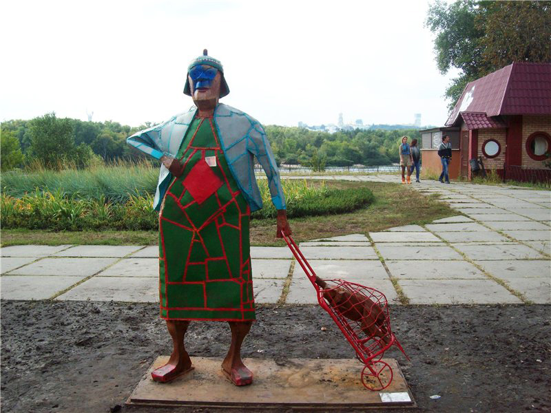 Ранее коммунальщики Днепровского района засыпали ноги бабки и ее кравчучку с уткой землей, создав вокруг нее клумбу, где были посажены маленькие деревья и цветы. Это сильно возмущало скульптора, Киселева утверждала, что из-за излишней влаги металлическая конструкция бабки быстро поржавеет и придет в негодность, но коммунальщики уверяли, что так будет красиво. Все закончилось тем, что деревья и цветы усохли и землю из-под ног бабки убрали.