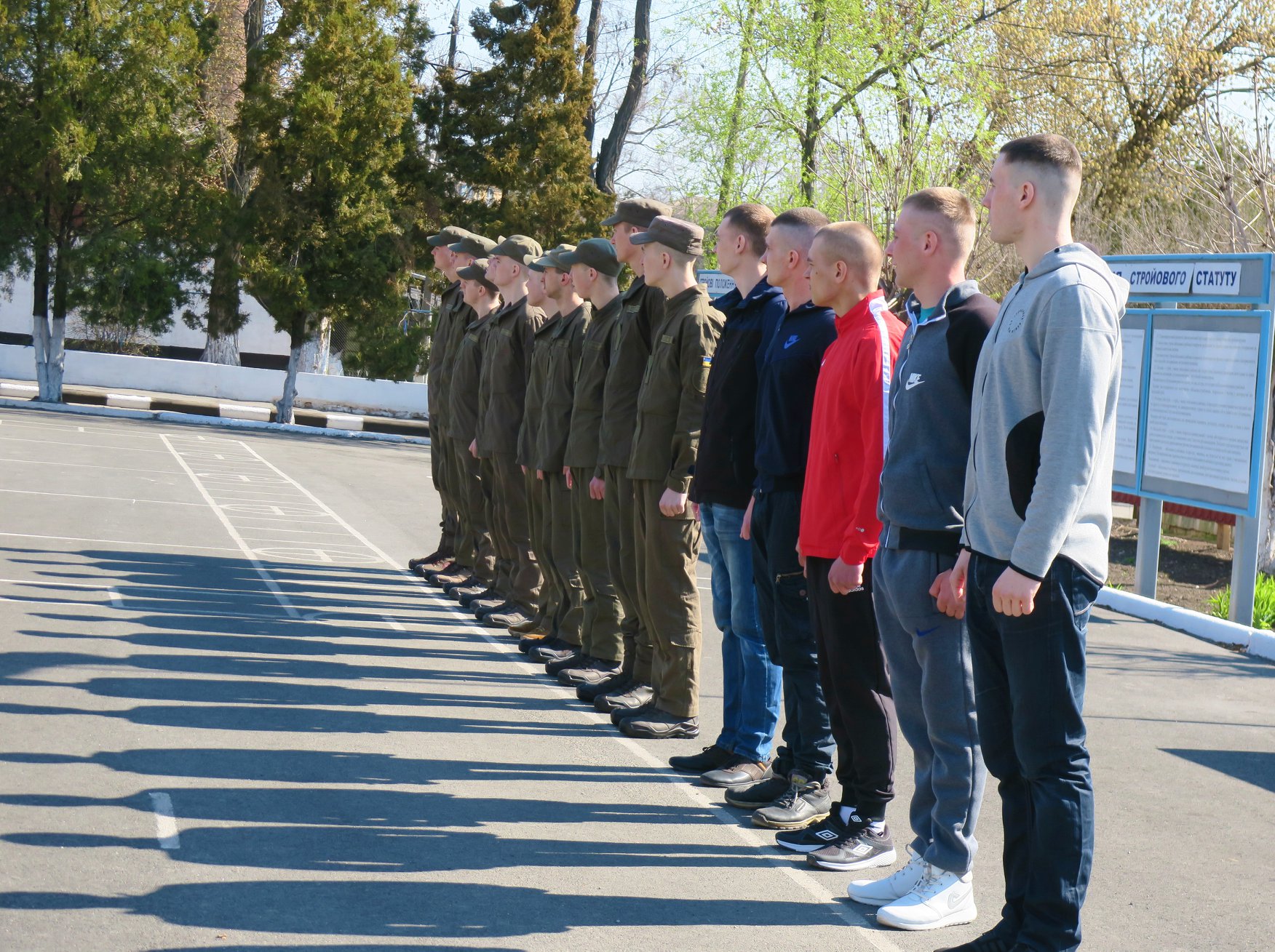 Урочисті заходи з нагоди звільнення в запас розпочалися з загального шикування особового складу полку на стройовому плацу. Командування військової частини привітало бійців, які мужньо захищали свою державу та відслужили встановлені терміни служби.
