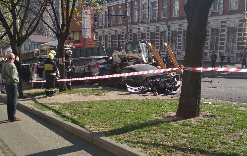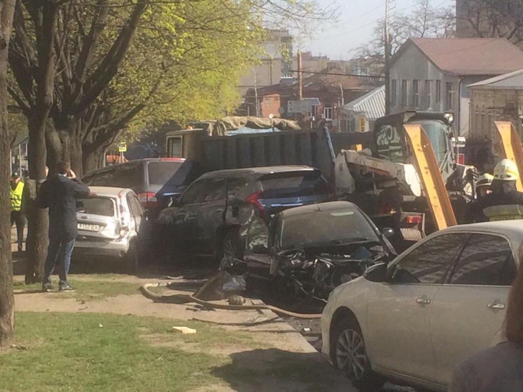 В Днепре на проспекте Александра Поля в районе улицы Ульянова при спуске у КрАЗа отказали тормоза, вследствие чего он протаранил 14 авто. Об этом сообщает местное издание dnepr.info.