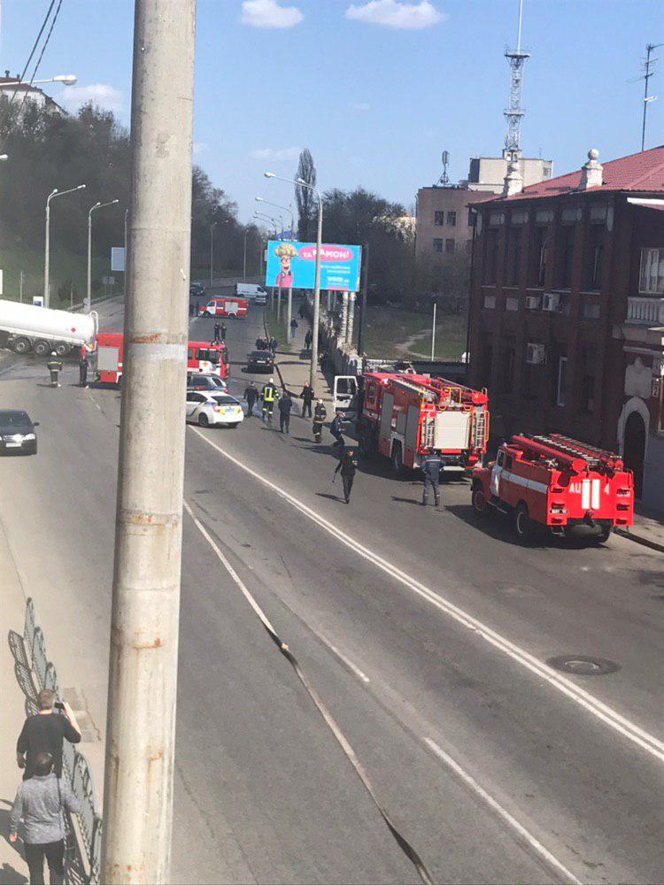 Это произошло из-за повреждения цистерны грузовика. Ул. Шевченко (от перекрестка с ул. Маршала Бажанова) частично перекрыли. Сейчас спасателей охлаждают цистерну. pic.twitter.com/RwGk8a8L1W