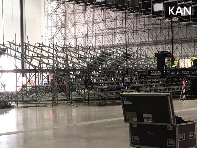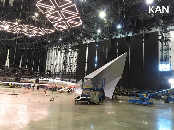 Строительная бригада в "Экспо Тель-Авив" в Израиле усердно работает над созданием треугольной сценической конструкции. Как выяснилось, строительство началось в начале апреля и будет завершено в конце месяца. Об этом говорится на официальном сайте "Евровидения 2019", где уже появились первые реальные фотографии, сделанные во втором павильоне – именно в нем будет проходить главное шоу.