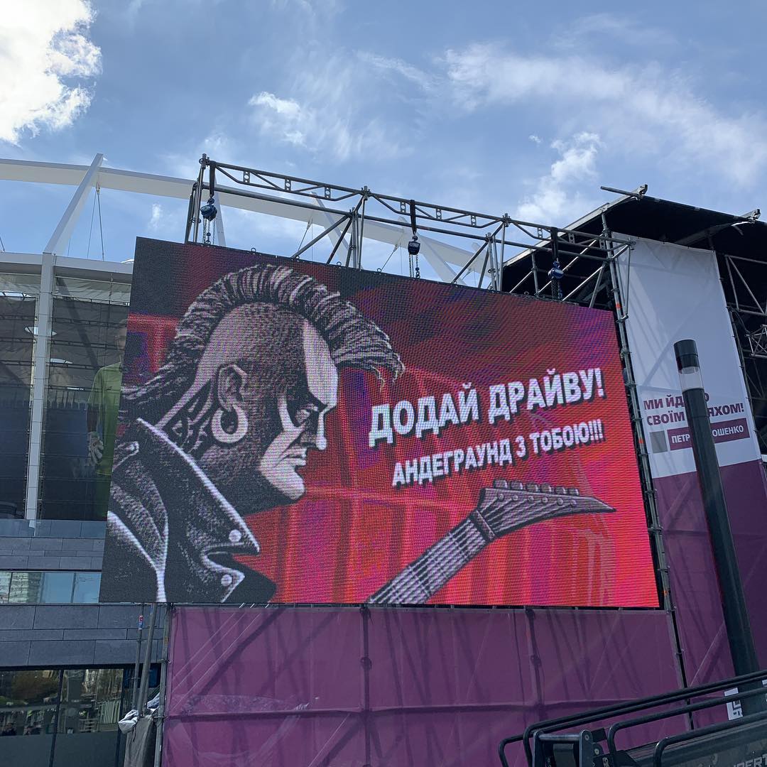 Фотофакт: К приезду Порошенко "Олимпийский" украсили оригинальной растяжкой