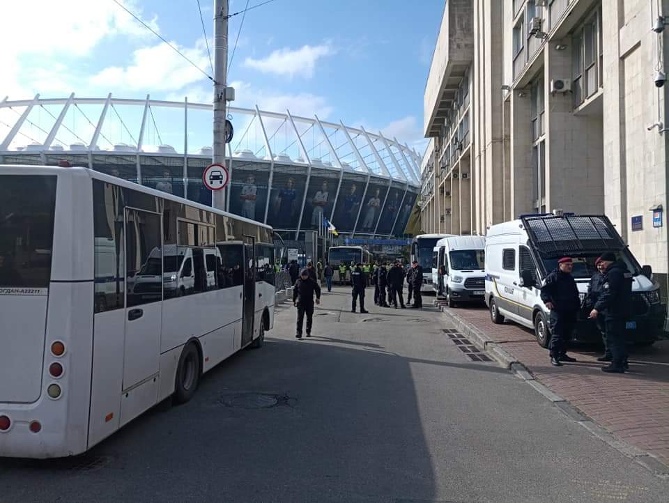 В центре Киева усилена охрана в районе национального спорткомплекса «Олимпийский», куда может приехать президент Украины Петр Порошенко на дебаты с кандидатом в президенты Владимиром Зеленским.