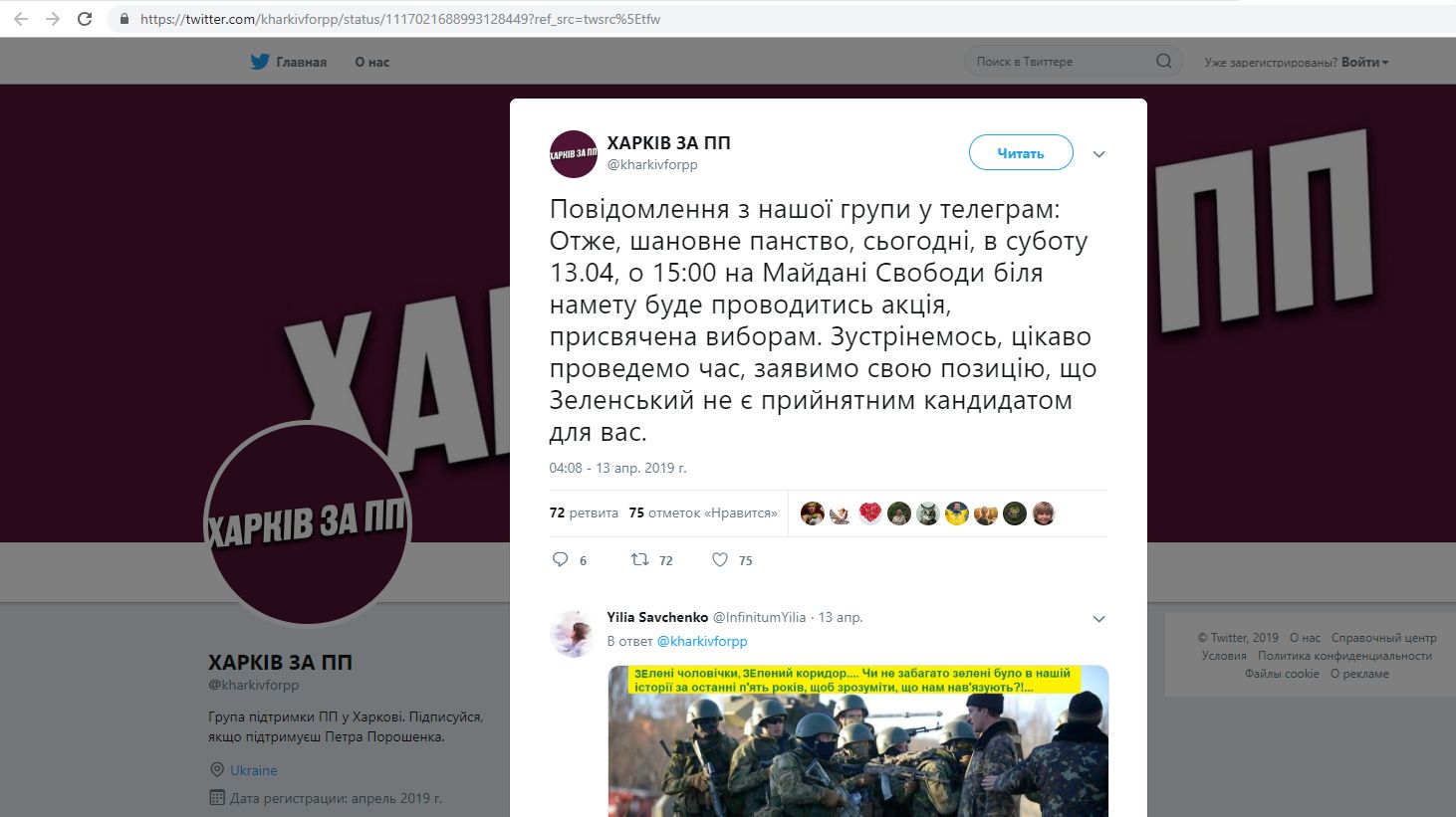 Акцію в цей же день анонсували в регіональних спільнотах підтримки Петра Порошенка в Twitter і Telegram.