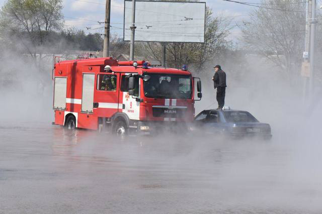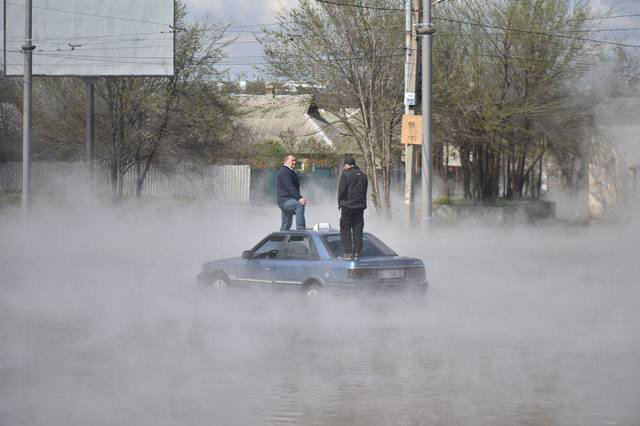 На улице Шевченко в Харькове днем 17 апреля произошел прорыв теплотрассы, соединяющей ТЭЦ-5 и Салтовку. В результате несколько улиц залило кипятком.