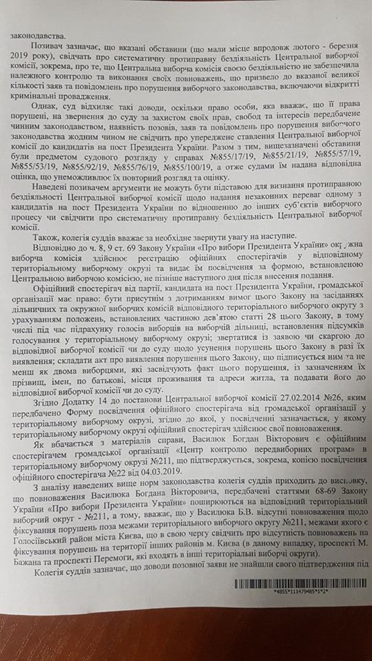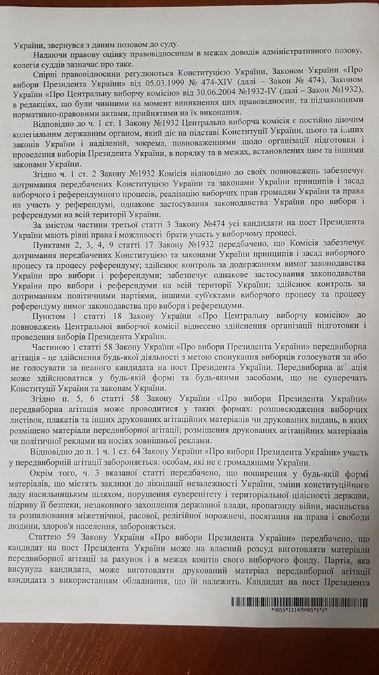 В иске также отмечается, что во время повторного распределения должностей в ОИК в связи со снятием с регистрации кандидатов, ЦИК предоставила предпочтение одному из претендентов на пост Президента Украины.