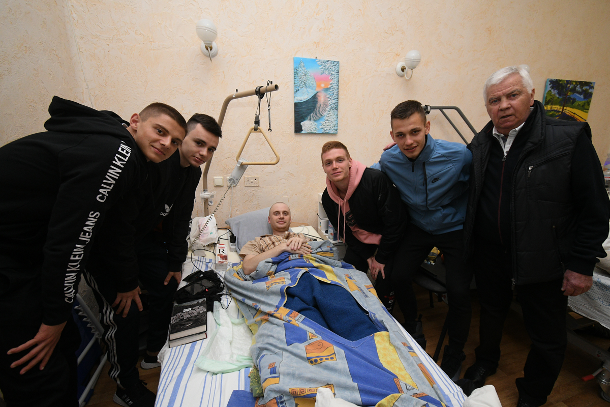 Игроки "Динамо" Виктор Цыганков, Виталий Миколенко, Владимир Шепелев, Николай Шапаренко и легенда клуба Владимир Мунтян посетили раненых воинов в военном госпитале.