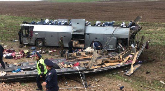 Пассажирский автобус попал в аварию в Кордайском районе Жамбылской области Казахстана – восемь человек погибли на месте, еще трое скончались в больнице.