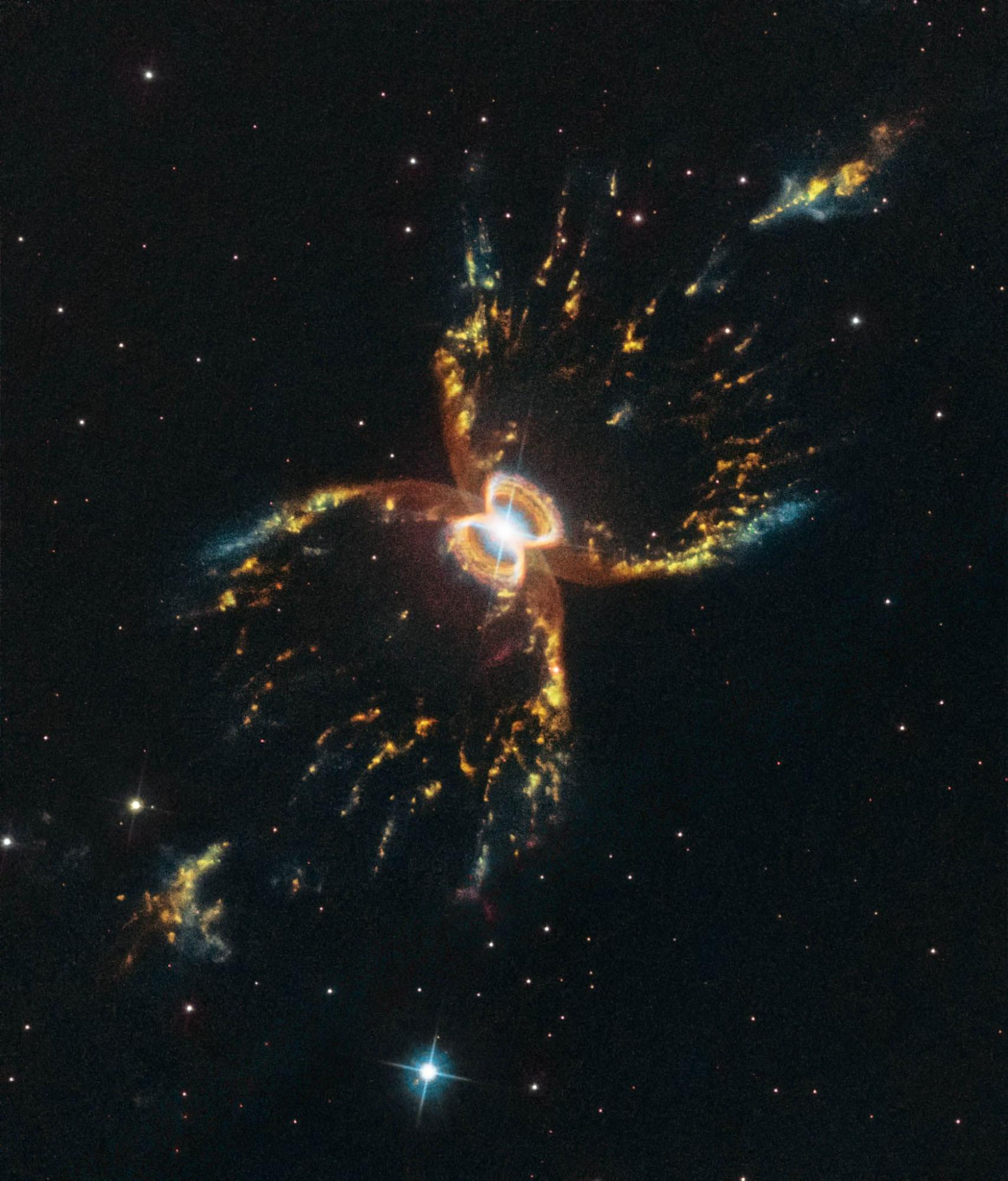 К своему дню рождения Hubble сделал впечатляющие снимки туманности Южный Краб, которая находится в созвездии Тельца в семи тысячах световых лет от Земли. На некоторых из них туманность напоминает очертания краба, на других – мотылек или даже сшитое по последней моде женское платье.