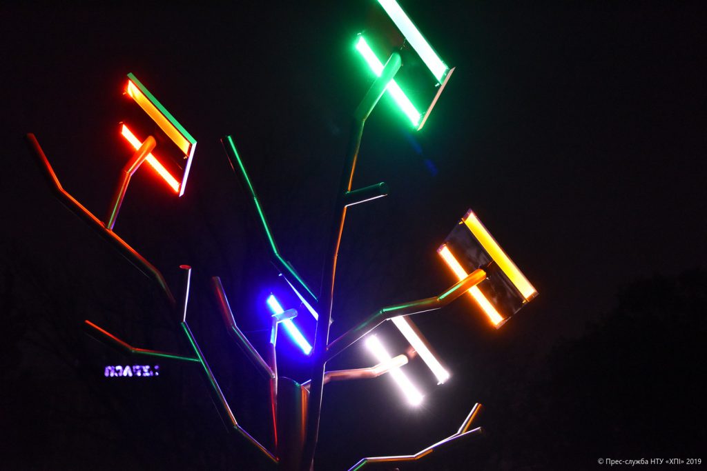 Сегодня на главной площади НТУ «ХПИ» установили первое в Харькове «солнечное дерево», которое использует энергию солнечных панелей. С его помощью можно не только круглосуточно заряжать мобильные устройства и пользоваться услугами высокоскоростного интернета. С наступлением темноты «солнечное дерево» работает еще и как фонарь, освещая все вокруг разноцветными огнями.