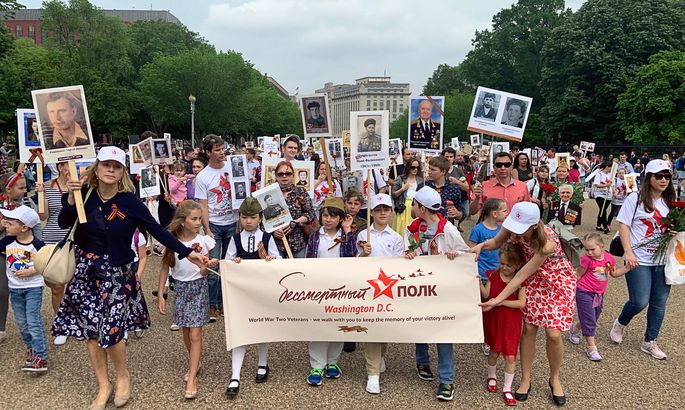 В столице США в субботу прошла акция "Бессмертный полк". Участники шествия собрались в самом сердце американской столицы - у северного крыла Белого дома, и оттуда прошли шествием до мемориала жертвам Второй мировой войны. В акции приняли участие россияне из разных городов США, посол Анатолий Антонов, и даже несколько поддерживающих акцию американцев.