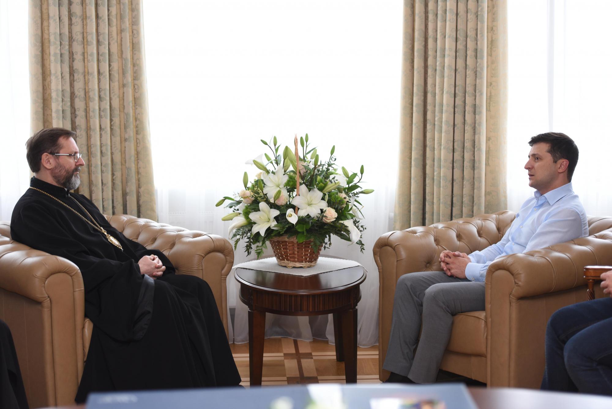У понеділок, 6 травня, новообраний Президент України зустрівся з главою Української греко-католицької церкви Святославом Шевчуком. Зустріч відбулася у резиденції Блаженнішого Святослава при Патріаршому соборі Воскресіння Христового у Києві.