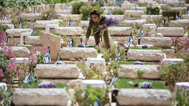 Накануне Дня памяти военнослужащие ЦАХАЛа устанавливают небольшие флаги Израиля на могилах всех погибших воинов на кладбищах страны.
