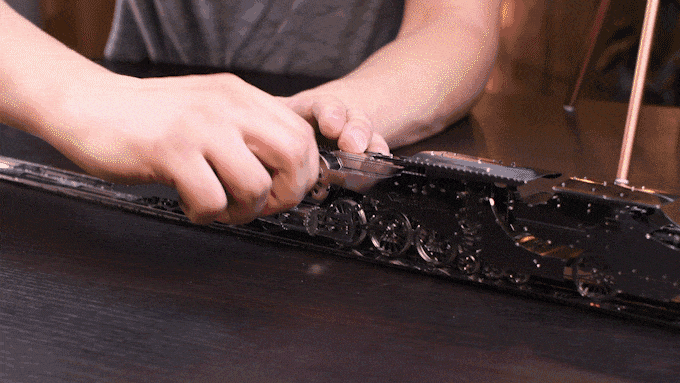 В набор входят пластины с металлическими деталями. Они изготовлены методом химического травления, поэтому их края сглажены и безопасны. Все детали можно легко согнуть руками. В специальных отсеках находятся шестерни из толстого металла и блок с пружиной. Модели собираются при помощи небольших плоскогубцев — к каждой прилагается подробная инструкция на нескольких языках и видеоинструкция.
