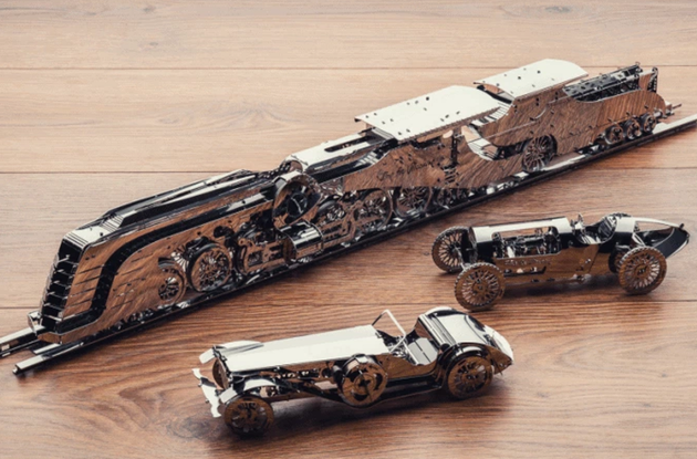 Украинский проект Time 4 Machine, который производит металлические 3D-пазлы в стиле стимпанк, собрал на Kickstarter более $430 тысяч, хотя изначально целью было всего $15 тысяч. Авторы проекта представили поезд, самолет, автомобили, танк, трактор, картхолдер и часы. Модели могут двигаться: часовой механизм заводится, как будильник, автомобиль приводится в действие пружиной, а самолет запускается при помощи пропеллера.